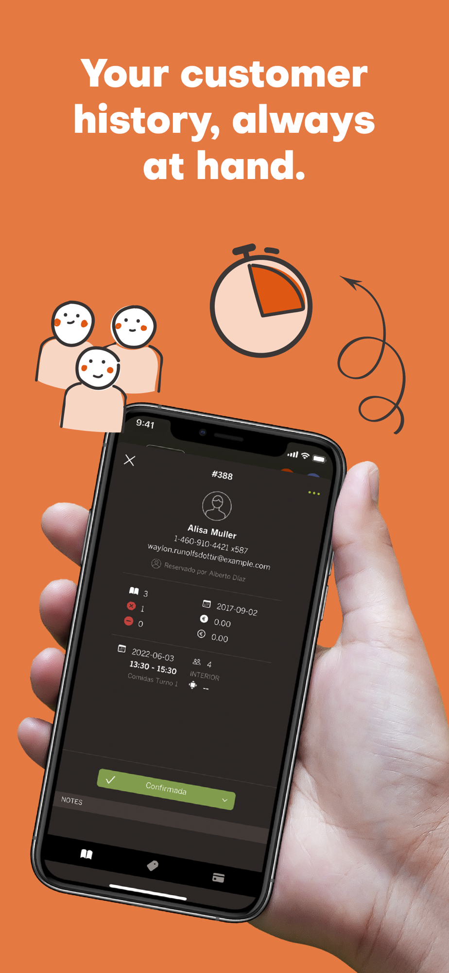 · Manage your customer database with the history of reservations and invoiced products/services.