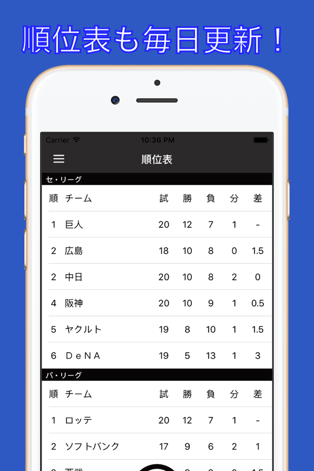 このアプリでバファローズの最新ニュース、動画はもちろん順位もすぐに確認できます!試合を見ながらみんなでコメントできる"実況機能"もあります。