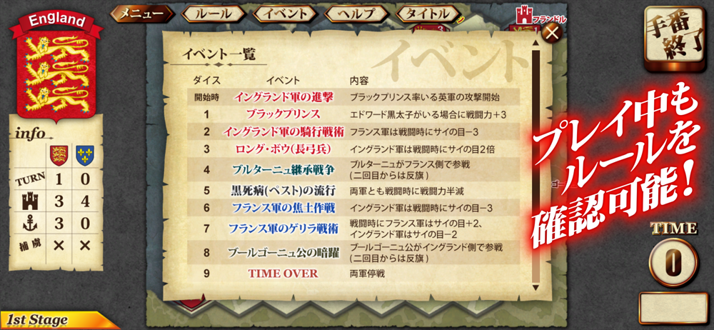 a.コンピューターと対戦(プレステージ、イングランド軍モード、フランス軍モード、エクストラモード)