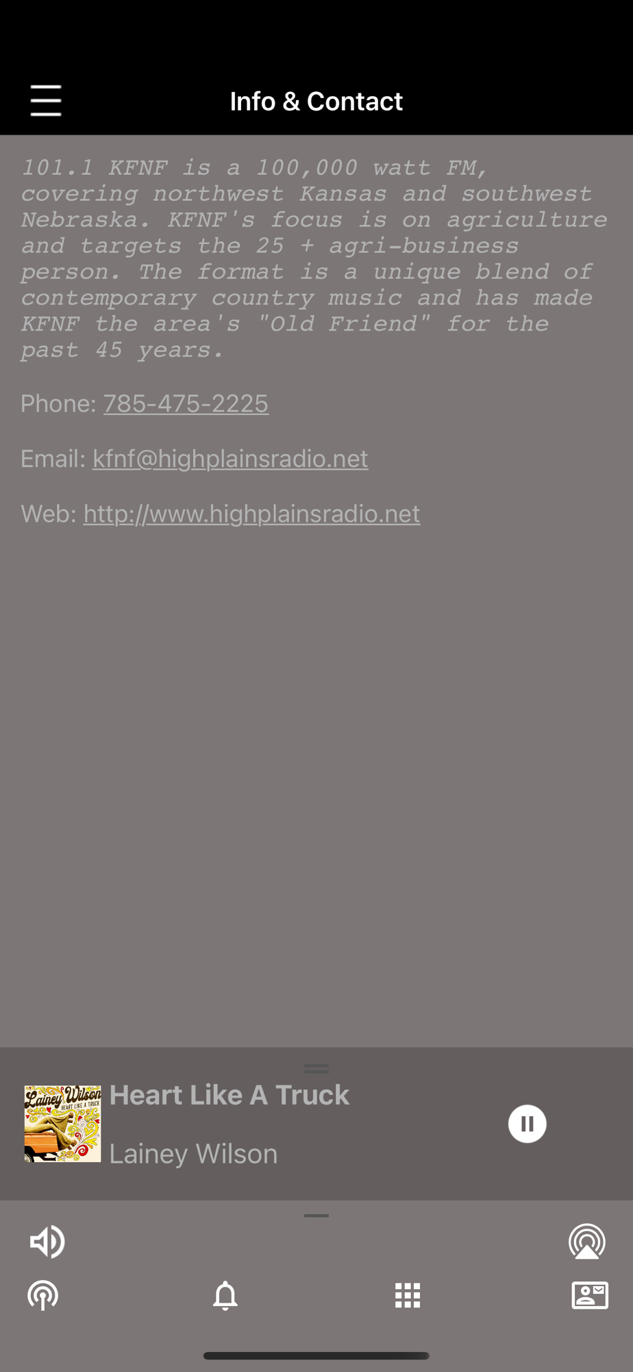 101.1 KFNF is a 100,000 watt FM, covering Northwest Kansas and Southwest Nebraska. KFNF's focus is on agriculture and targets the 25 + agri-business person. The format is a unique blend of contemporary country music and has made KFNF the area's "Old Friend" for the past 45 years.