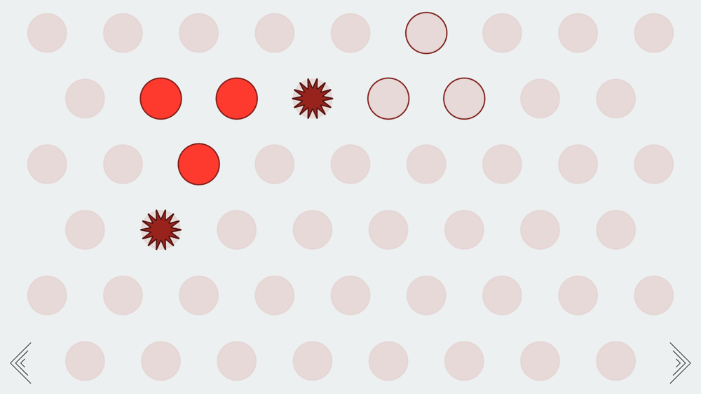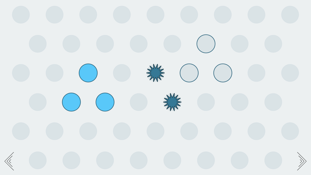 To solve a level you must find a sequence of taps that will move the filled circle to their places.