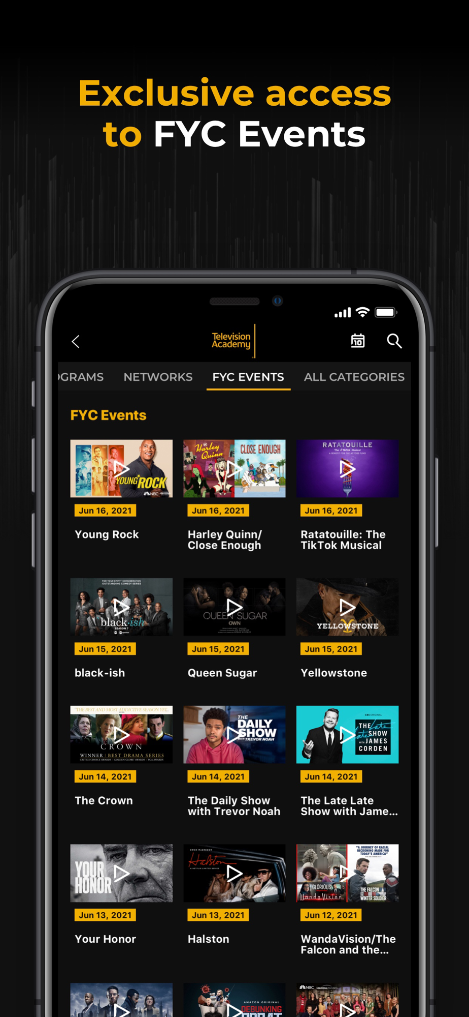 Television Academy member-only access to FYC programs & events, Nominee Videos, Sneak Peek, and other competitions.
