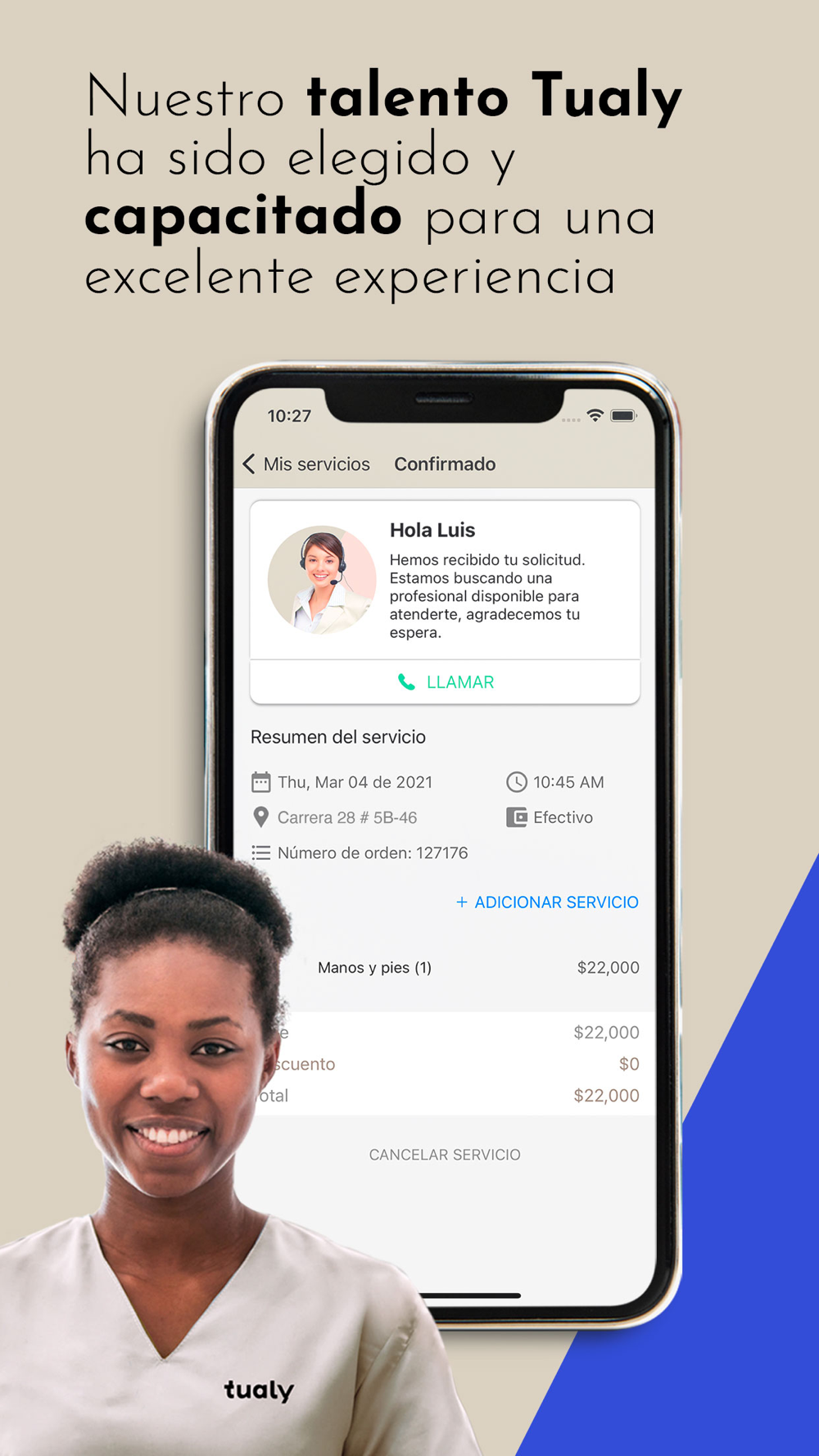 Tualy es una aplicación para servicios de belleza y cuidado personal a domicilio, solicita tu ritual de cuidado en cualquier momento y en cualquier lugar.