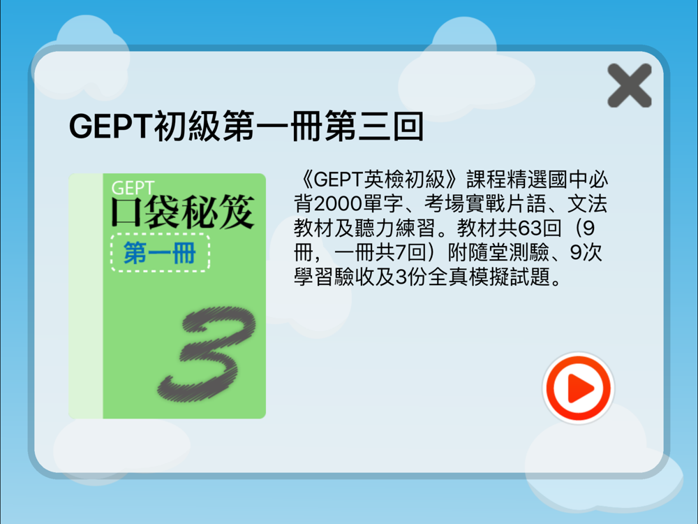 教材包含單字、片語、隨堂測驗、全真模擬考與測驗詳解。 專為英檢初級打造的必勝教材,照著我們幫你排定的課程,每天練習一定會進步!