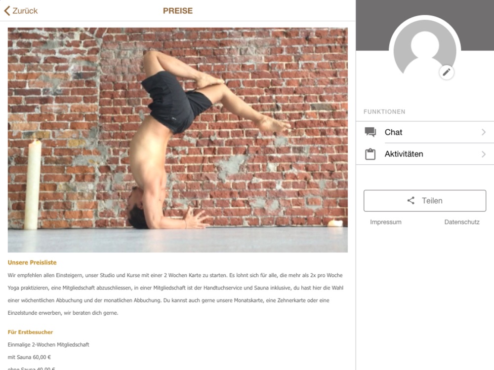 Wir heißen dich herzlichst willkommen in unserem Inside Yoga Studio. Dich erwartet ein modernes, stilvoll eingerichtetes Yoga Studio mit 840m² mitten im Herzen Frankfurt City. Erlebe eine entspannte Atmosphäre ohne Stress und Hektik und erlaube dir, einfach den Alltag hinter dir zu lassen. In unserer großzügigen Inside Yoga Lounge kannst du gerne einen Tee genießen, in unserer Bibliothek stöbern und alle Yoga Vibes erfahren. Eine gemütliche Ruheoase lädt dich zum Saunieren und Entspannen ein. Wir freuen uns, dich persönlich zu begrüßen.