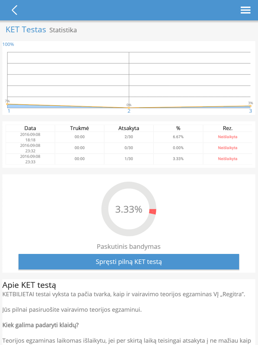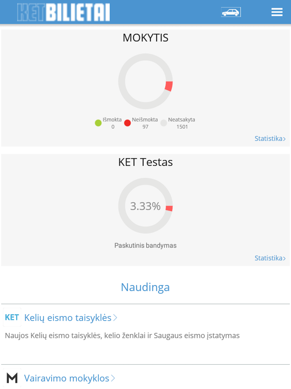 "Laikiau 3 kartus Regitroj, pirmus du nesprendziau bilietų KETBILIETAI, pasprendes čia 3 kartą išlaikiau Regitroje be nei vienos klaidos."