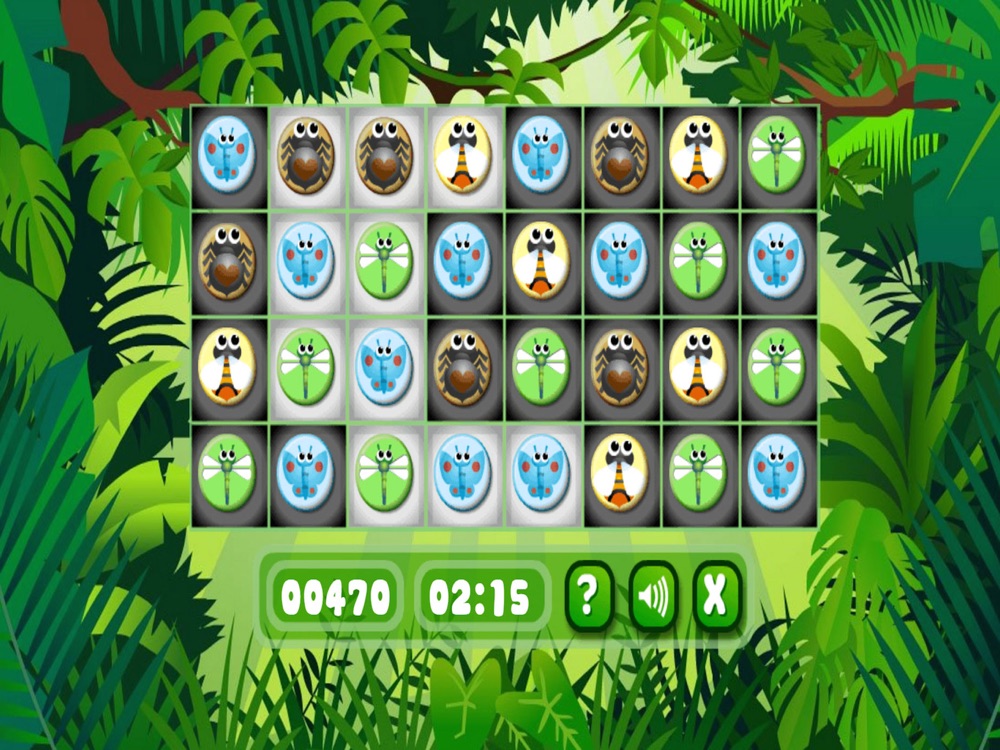 In Match The Bug - Puzzle you have to Swap any bug with its horizontal or vertical neighbour to form a row of 3 or more matching bugs. you can use your skills to match bug. This Match The Bug - Puzzle is totally a free game! Matching a row of bugs lights up the tiles. Light all the tiles in the grid to win the round and move to the next level. Locked bugs need to be matched twice.