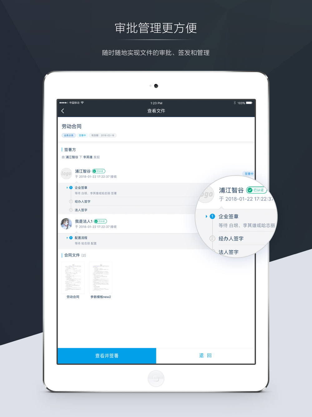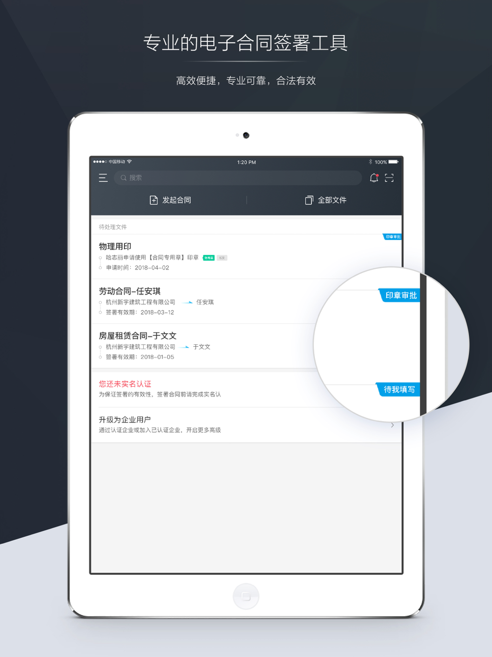 契约锁是一款基于互联网的电子合同签署平台。契约锁主要解决企业、机构、个人之间的合同签署、存储、管理问题。契约锁电子合同具有与纸质合同相同的法律效力,且避免了纸质合同签章、传递、存储、查询的不便与高成本。
