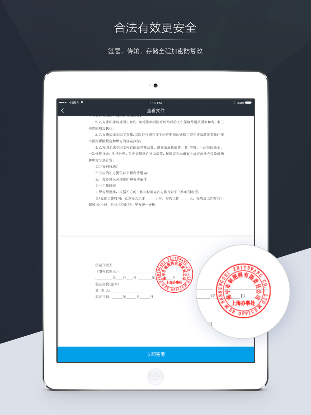 7*24小时在线签署及管理,金融级安全方案,安全稳定的为您提供合同签署及查阅服务。