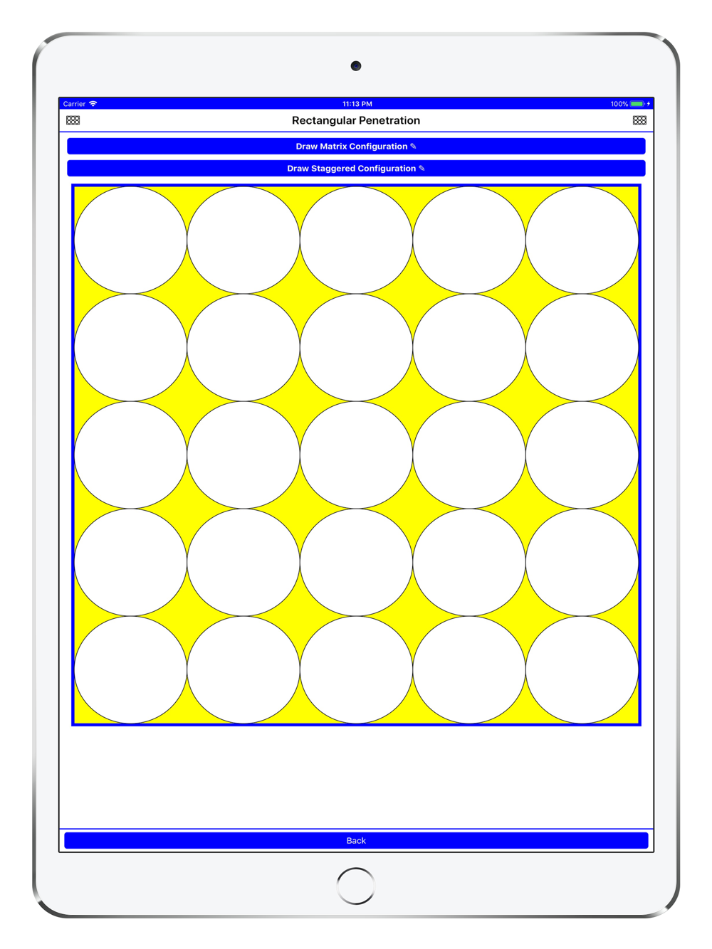 This App effectively provides a ‘circle packing’ algorithm for ‘circles within a circle’ or ‘circles within a rectangle’. The real world application of this allows you to ascertain how many cables, conduits or pipes etc you can get through a given penetration. The penetration can either be a ‘circular penetration’ such as a round penetration through a beam or floor slab, or a ‘rectangular penetration’ such as a slot within a concrete wall or floor slab. All the items passing through the penetration need to be of the same outside diameter, or otherwise use the diameter of the largest item.