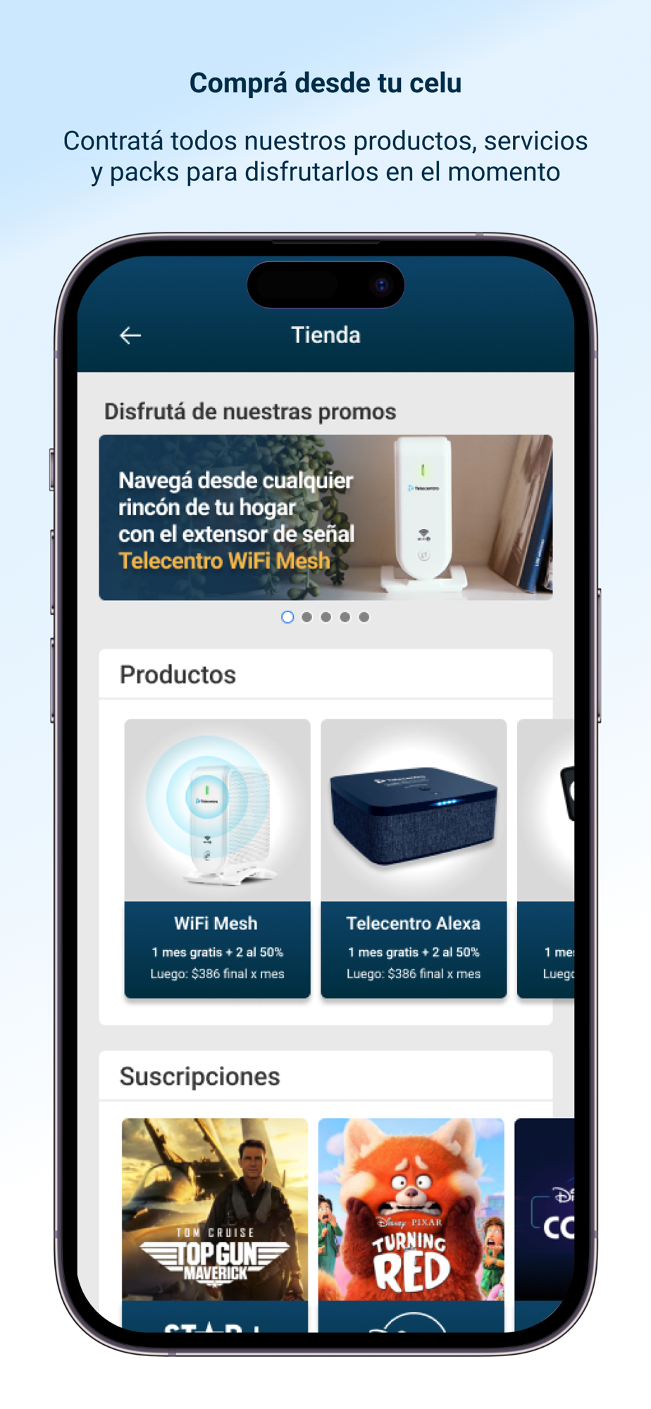 Con la Sucursal Virtual de Telecentro, podrás gestionar tu servicio de Internet, Televisión y Telefonía con un diseño intuitivo desde tu celular de una forma rápida y segura.