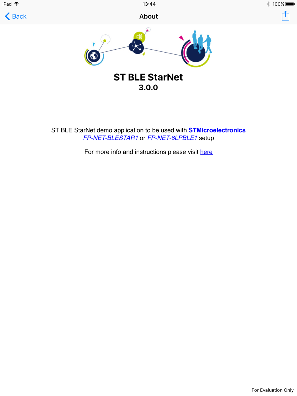 The ST BLE StarNet (previously known as ST SensNet) App is a companion tool to be used in conjunction with the ST’s FP-NET-BLESTAR1 function pack. It is designed to connect to a Bluetooth® Low Energy (BLE) device, acting as Central Node of a star-topology BLE network, to show data coming from and to send commands to all BLE Peripheral Nodes belonging to the BLE star network.