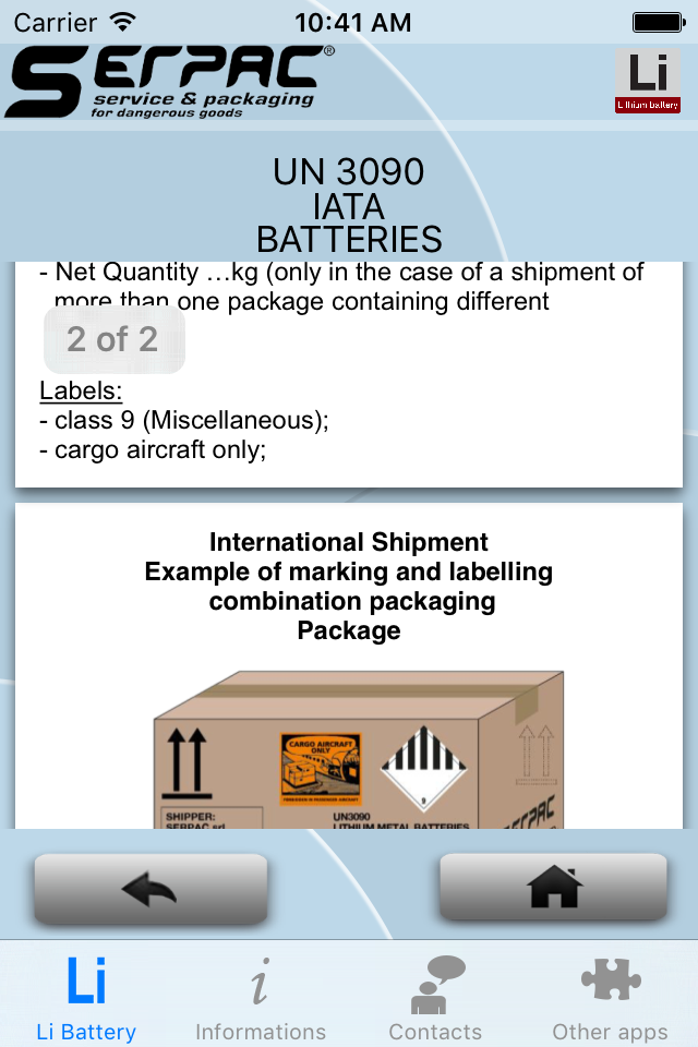 Lithium Batteries is an application that, through guided steps, will allow you to prepare your shipment in accordance with the requirements of ADR Regulations (by road), IMDG (by sea) and ICAO/IATA Regulations (by air) of: