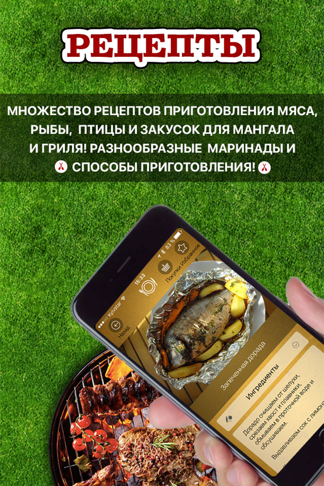 Более 200 оригинальных рецептов, удобный список покупок, а так же подробная информация о приготовлении и мариновании!