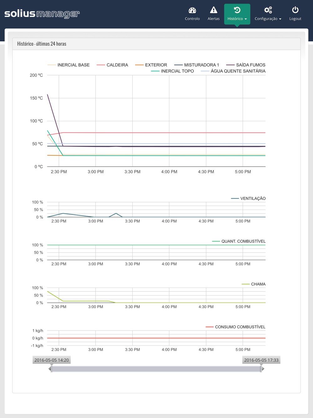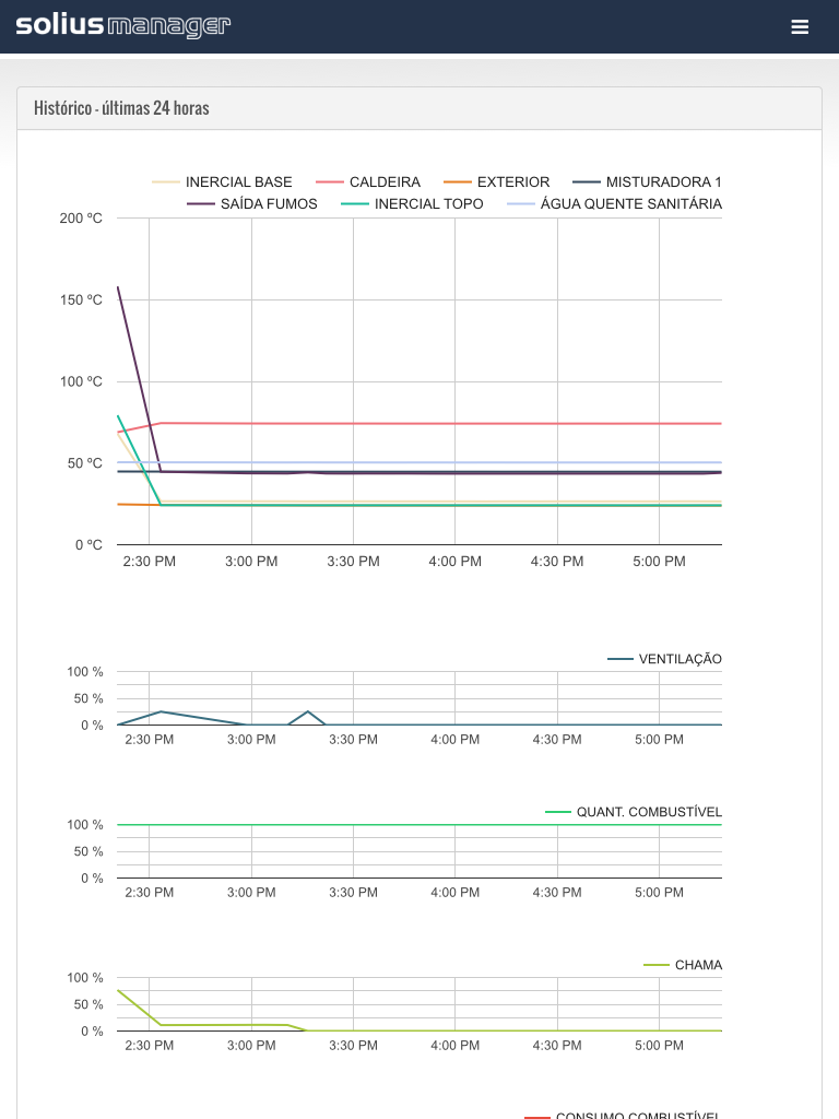 - Visualizar gráfico de funcionamento diário de vários componentes da instalação