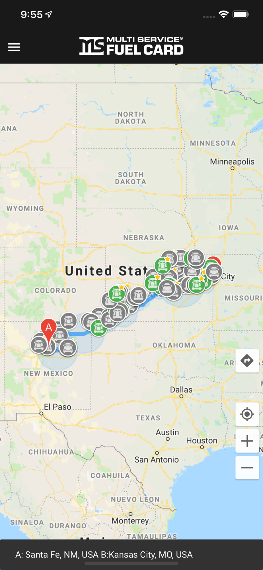 A state of the art mobile application powered by Multi Service Technology Solutions helps fleet operators manage their fuel cards right from their mobile device. Fleet Operators will enjoy the visibility of card activity as well as creating InstaMoney codes right from their mobile device. The drivers will have instant access to our more that 5000 merchant locations with the state of the art map features.