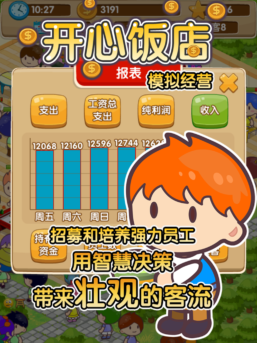 开心饭店是一款策略为主的模拟经营游戏,靠你的聪明智慧,将一家小饭店逐步做大。带来壮观的客流量和丰厚的收入!