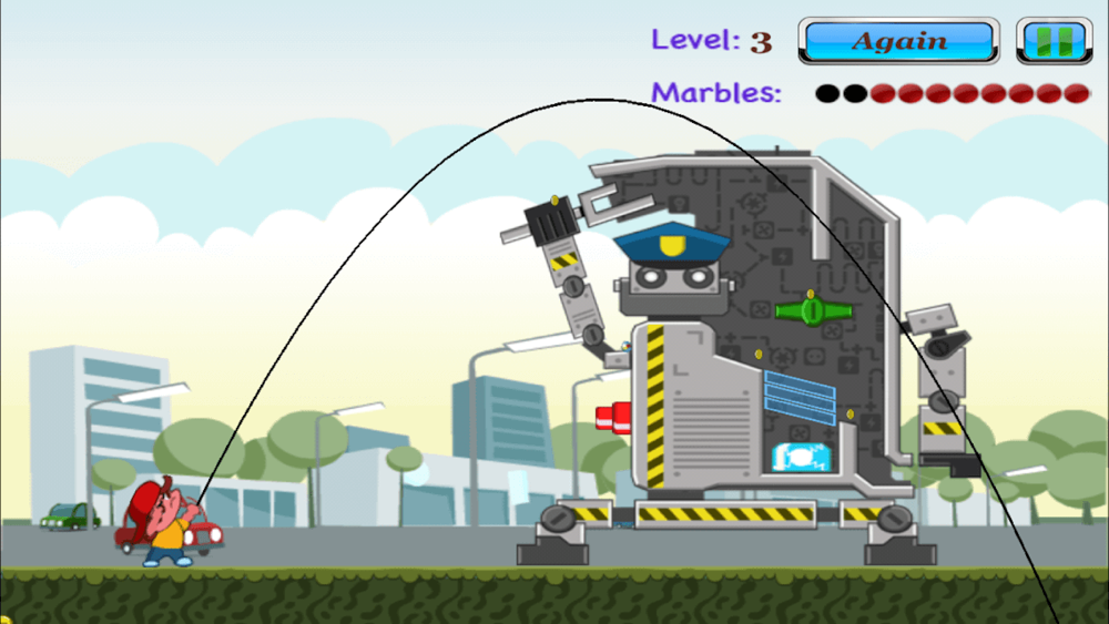 The Giant Evil Robots was attacked the small city. You are a hero kid, you must shoot the robot's heart to destroy it.
