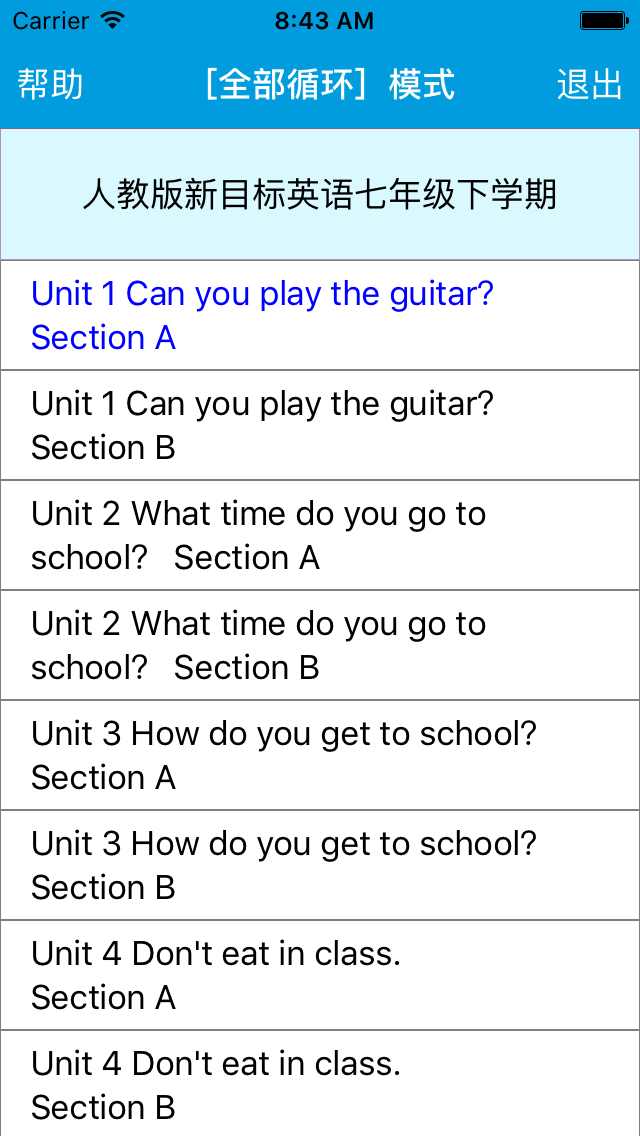 本应用对应人教版新目标初中英语七年级下课本,具有跟读模仿,自动听写,变速播放的复读机功能。