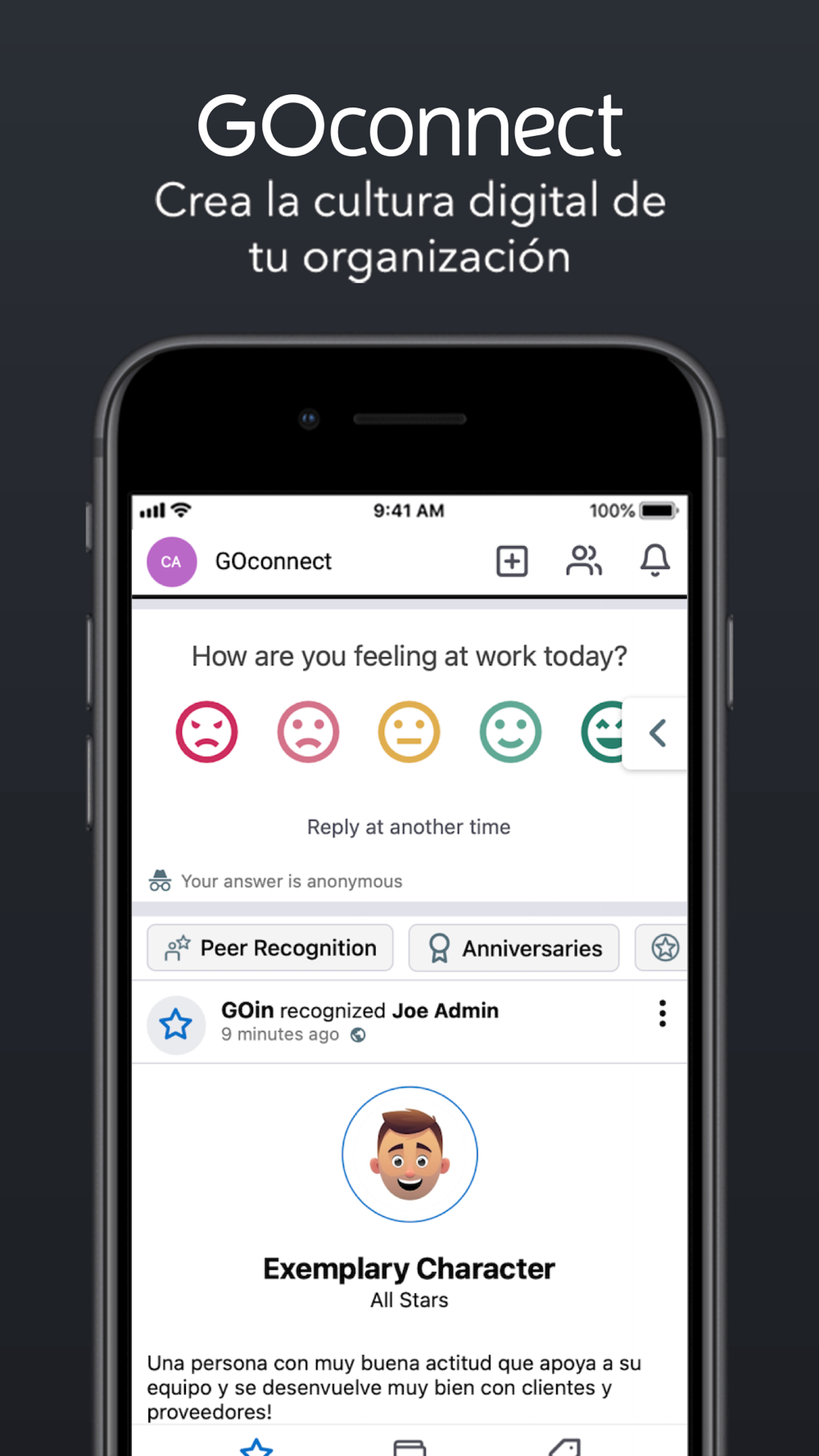 GOconnect is the app that allows you to access the contents, news and recognitions of the company from anywhere, facilitating the interaction with colleagues to strengthen bonds and the internal culture.
