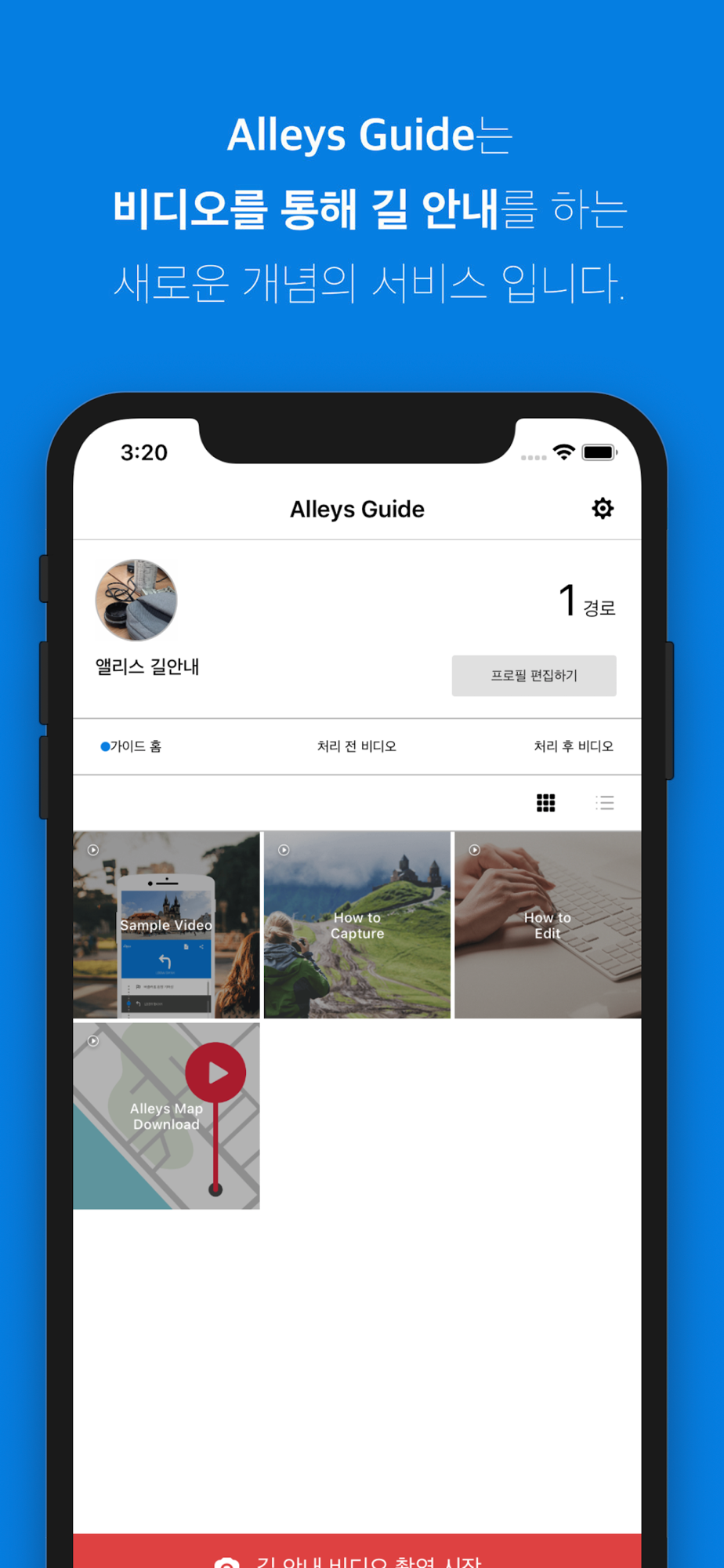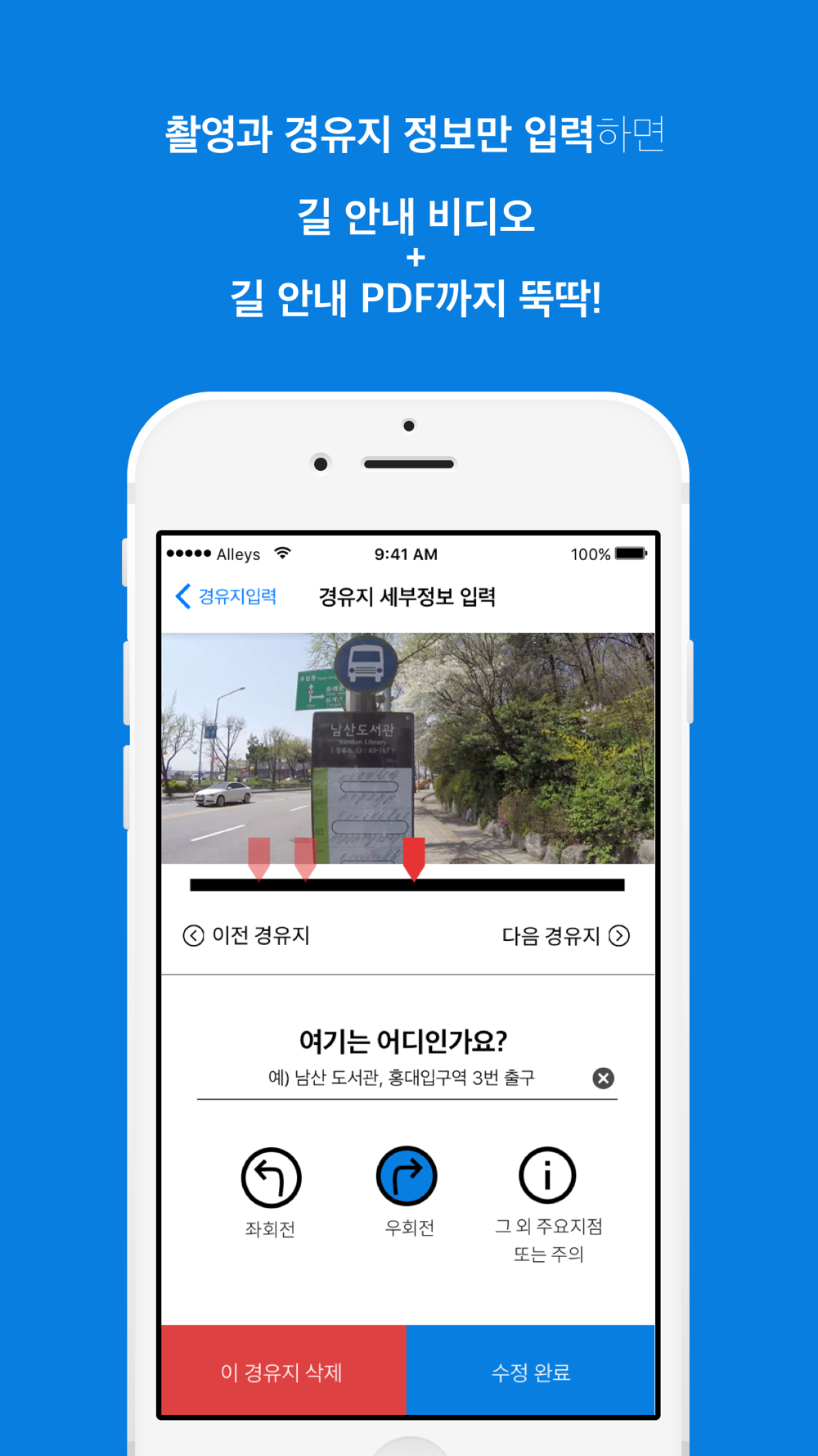 * 새롭게 업데이트 된 Alleys Guide 2.0버전은 이 전보다 훨씬 쉽게 길 안내 영상을 제작할 수 있도록 개선되었습니다. 이 모든 것을 앨리스원더랩(Alleys Wonderlab)과 함께 시작해 보세요 : )