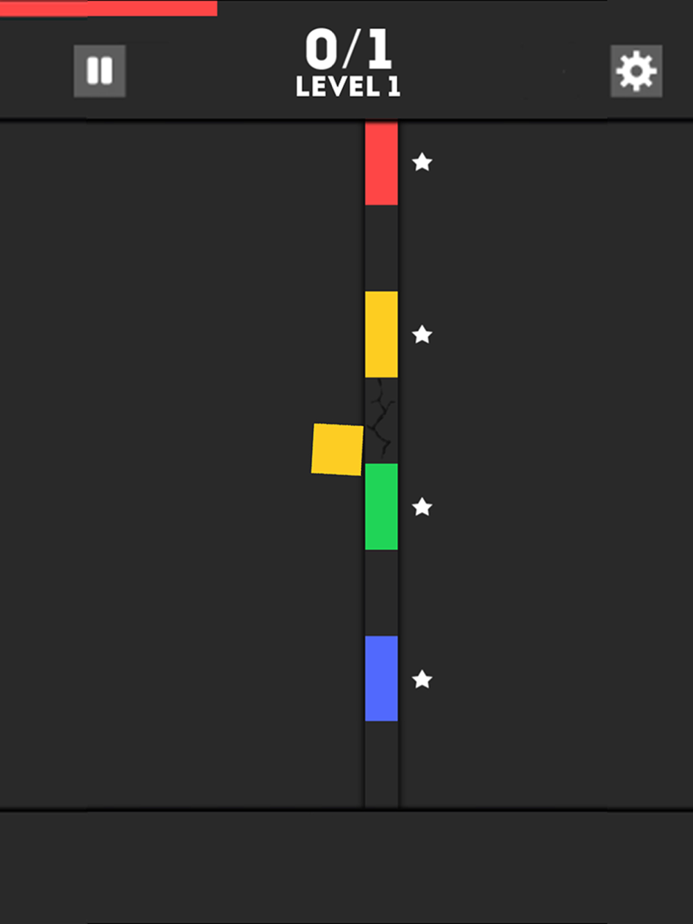 Goal is simple: Tap the device to make the block jump in the air. The color of the block will switch and change to either blue, red, yellow or green. Tap again to pass through the same color. Follow the color pattern. The block must be the same color in order to strike through the wall or YOU LOSE!. How far can you get?