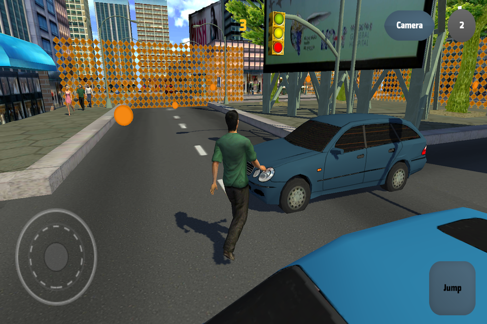 Walk freely in the city by controlling a man.