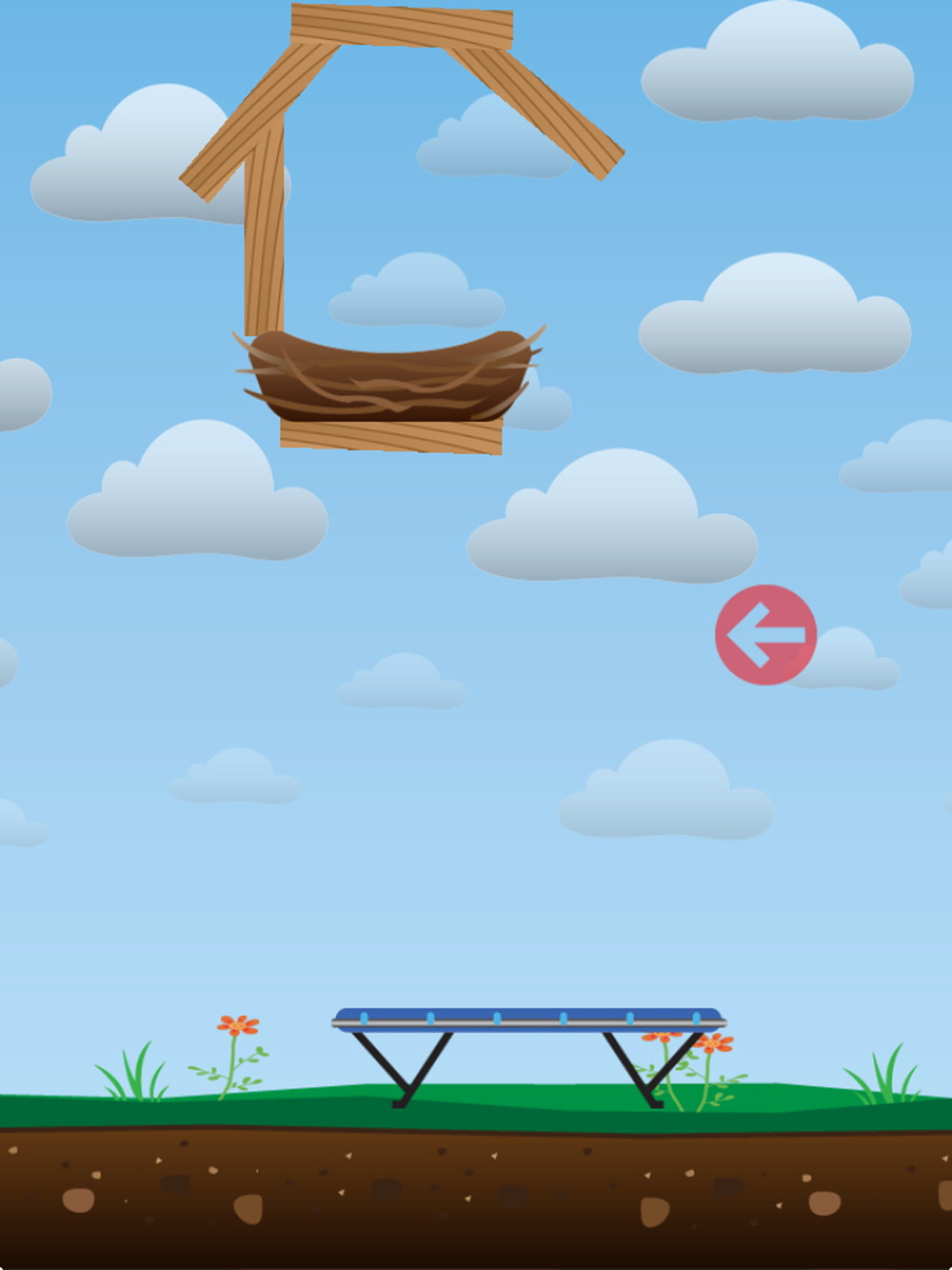 One stormy night a wild and turbulent wind blew the egg out of its nest. In order for the egg to hatch and grow into a bird, it needs your help to put it back in its nest. Just touch the Levels button to begin. Press and hold on the egg and drag back to control power and angle to launch it back into the nest. As the levels progress you will have obstacles that you will have to overcome in order to get the egg back in the nest.