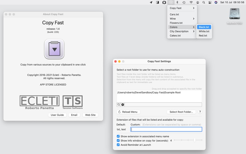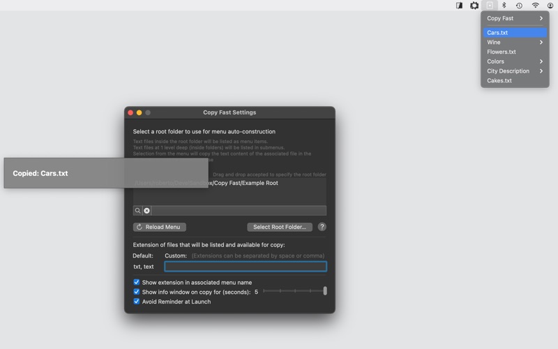 Whether you're working in another application or just need to quickly access a file, Copy Fast is always accessible from the right part of your menu bar.