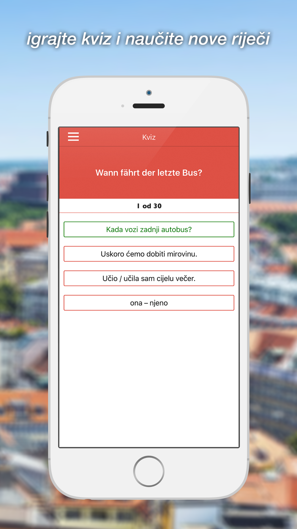 Opcija "kviz" će vam pomoći da proširite vlastiti vokabular i da provjeravate vaše znanje!