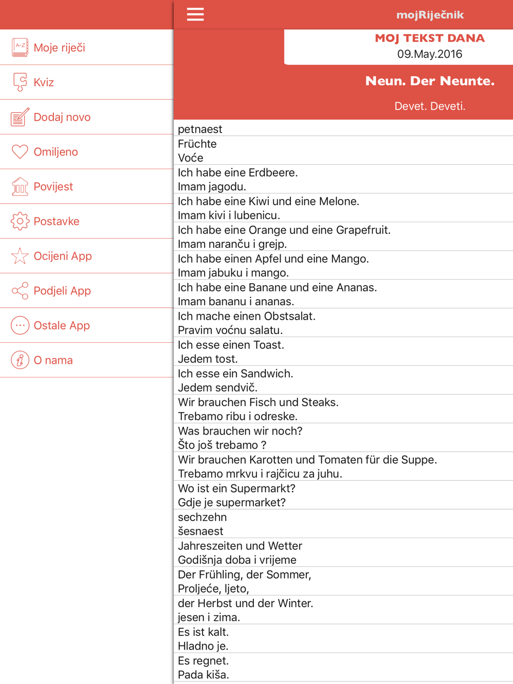 Rubrika "moj tekst dana" vam pomaže da svaki dan naučite bar jednu novu riječ ili da vas podsjeti na istu!