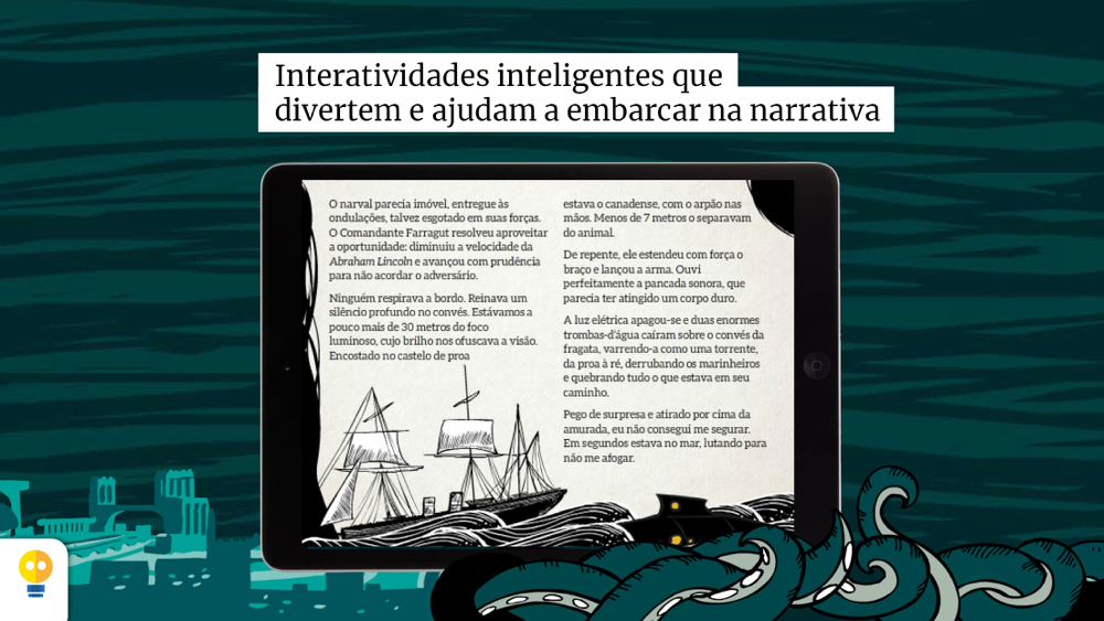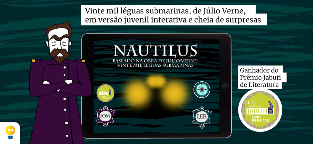 Nautilus é uma adaptação interativa da narrativa "Vinte mil léguas submarinas", de Júlio Verne, que inspirou inovadores e formou o gosto literário de todos os tempos. Sua proposta é levar os jovens a experimentar o pensamento inovador, unindo ciência e fantasia.