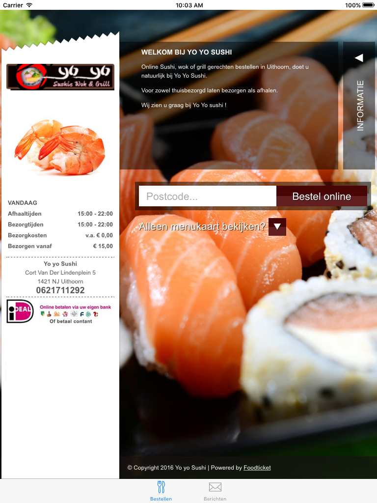 Met de Yo Yo Sushi app bestel je veilig en snel de lekkerste Japanse gerechten en meer van Uithoorn en omstreken. Direct online betalen via je eigen bank met iDEAL!