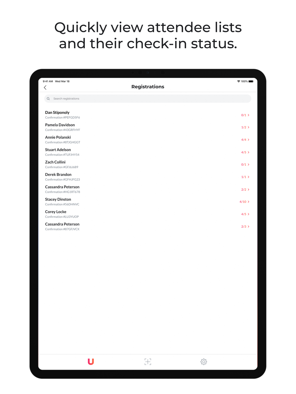 • Track Registrations: Easily view your attendee list at a glance or review their registration details in depth.