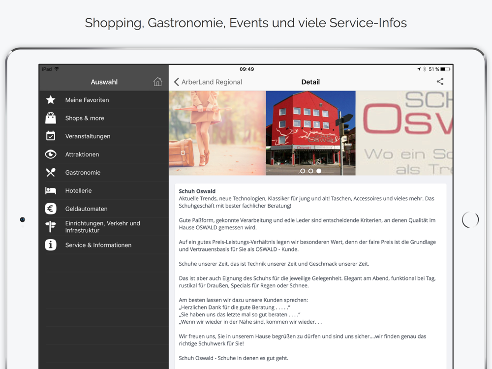 Geschäfte, Handwerk, Unternehmen, Gastronomie, Hotels, Sportvereine, Veranstaltungskalender, Attraktionen, Sehenswürdigkeiten, Freizeittipps, Spielplätze, Geldautomaten uvm.