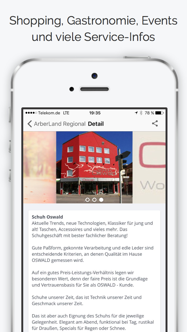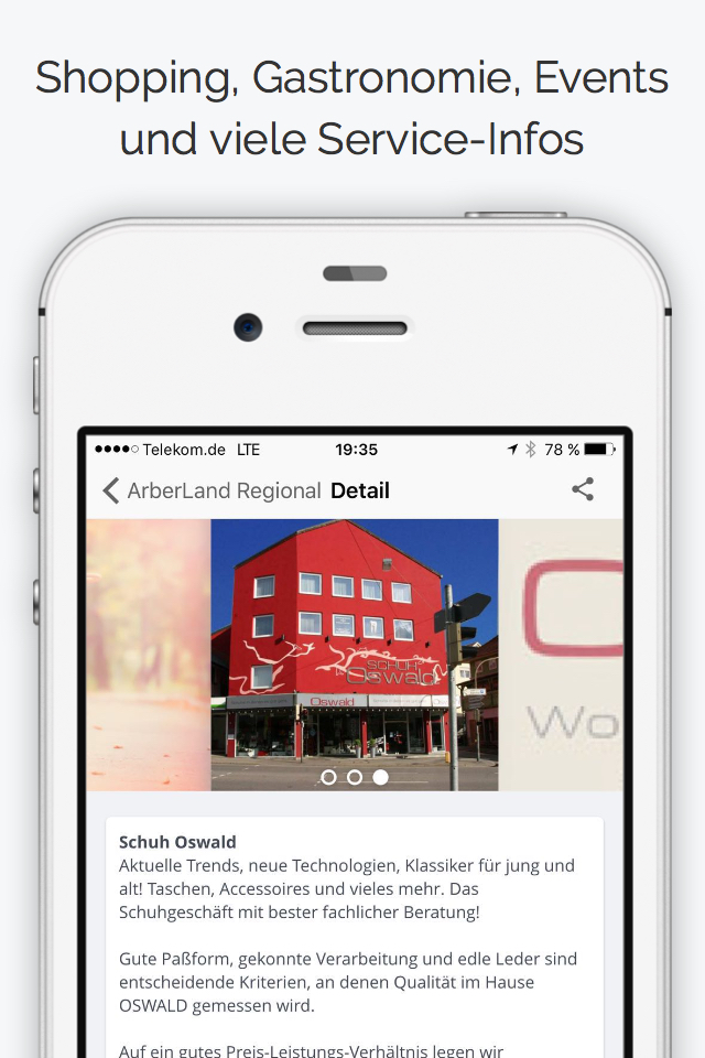 ArberLand Regional macht Schluss mit langweiligen Städte-Apps, in denen Tag für Tag die gleichen Inhalte eingetragen sind. Bei uns posten Ladenbetreiber, Wirte und Veranstalter selbst ständig Neuigkeiten, Schnäppchen, Events und Tagesangebote in der App - und täglich kommen neue Locations hinzu.