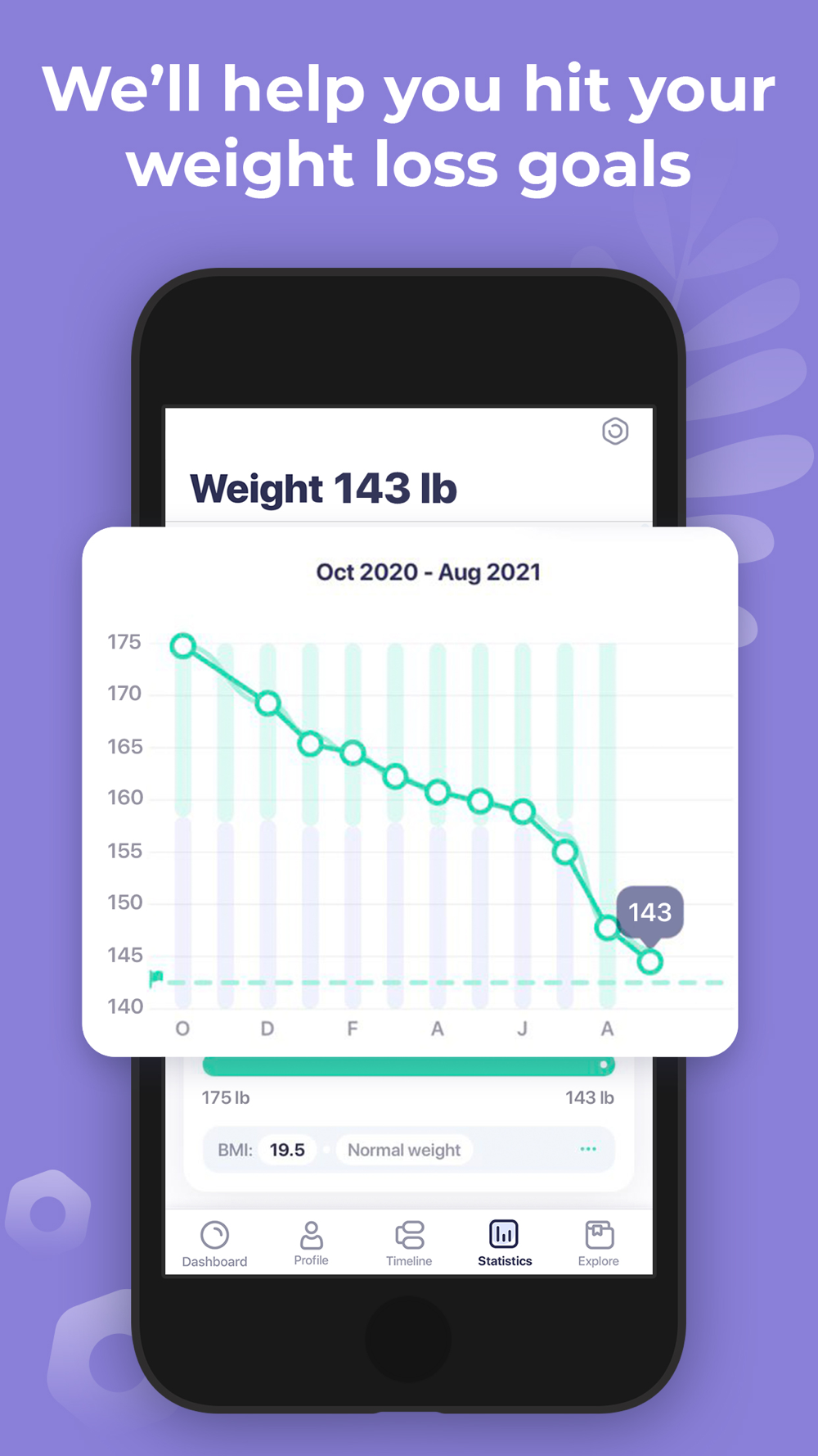 • Weight journal – Set your weight goal, and monitor the progress.