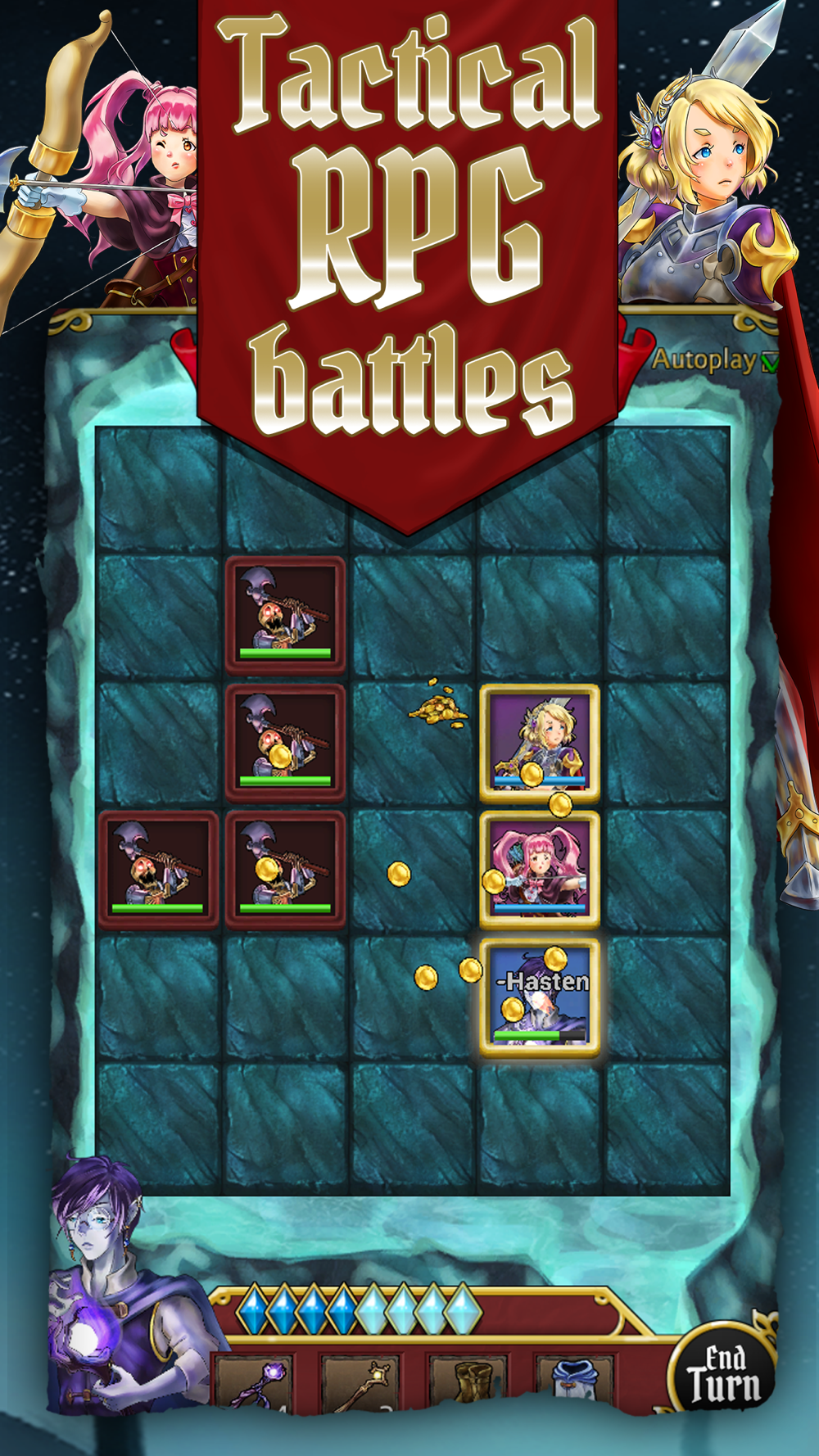 Raid Tactics is a great game for turn based tactical RPG fans! Every decision is a life or death situation. Our three heroes need your brilliant strategy to overcome challenges across more than 70 levels spread out over 8 uniquely themed dungeons. Collect blueprints, weapons, armors and trinkets, customize them with over 30 Rune words that will empower your weapons and armors differently with unique effects. Upgrade Rune words to get different and more powerful effects. Equip your heroes with combinations of weapons and armors that best fit your play style! And don’t forget to visit the casino for relief after a stressful battle!