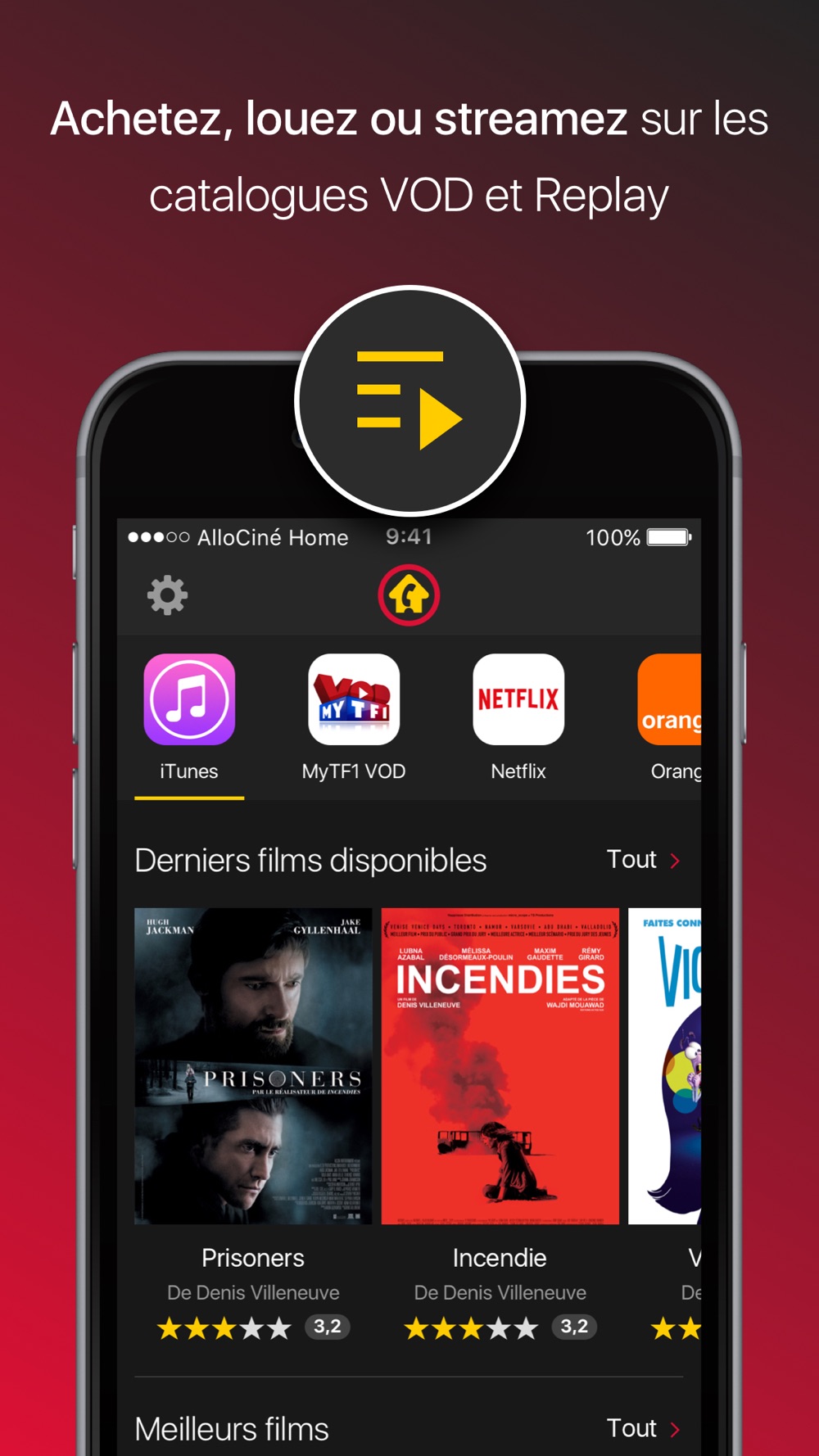 L'ensemble des films et séries proposés au sein de l'application peuvent être regardés de manière légale directement sur les plateformes concernées.