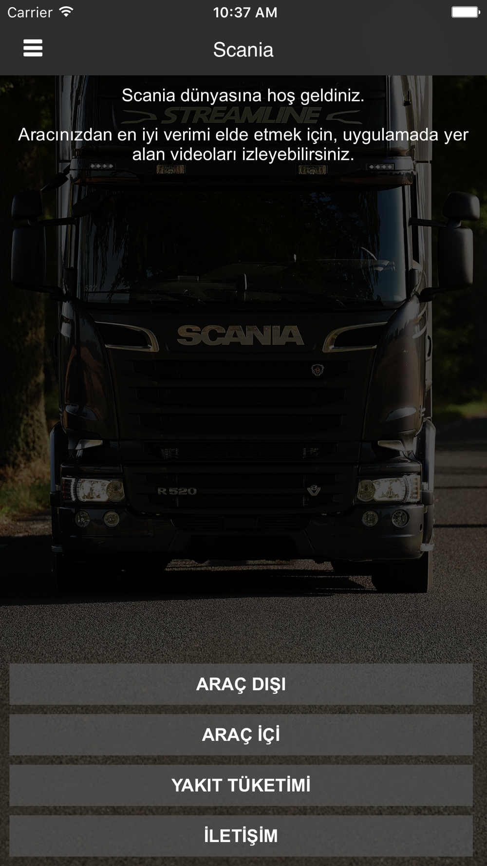 Scania dünyasına hoş geldiniz. Aracınızdan en iyi verimi elde etmek için, detaylı videoları içeren uygulamamızı yükleyebilirsiniz.