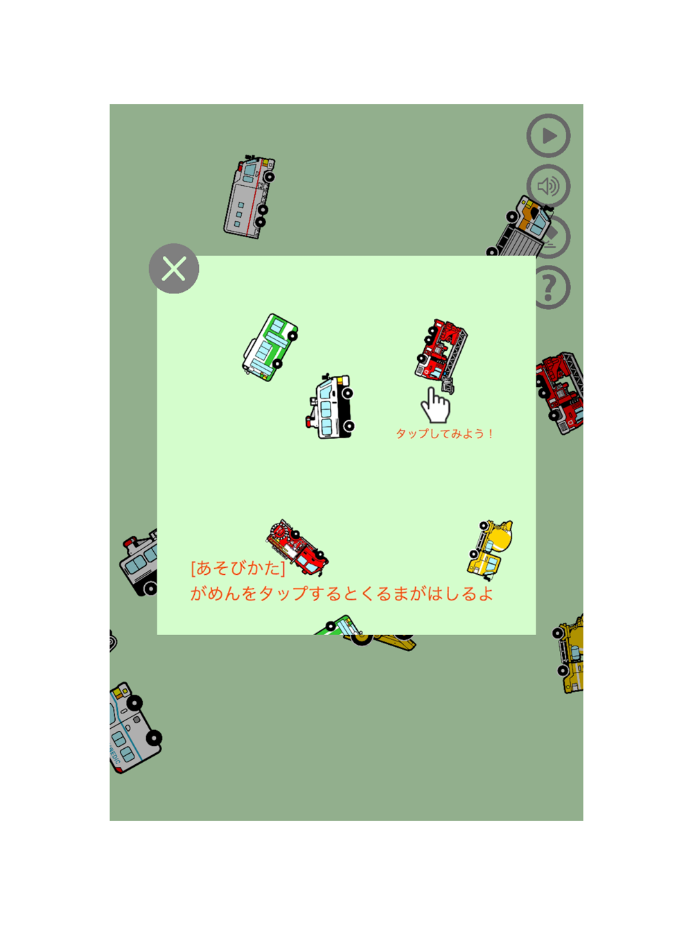 画面をタップすると、その場所を中心に働く車がぐるぐると走ります。