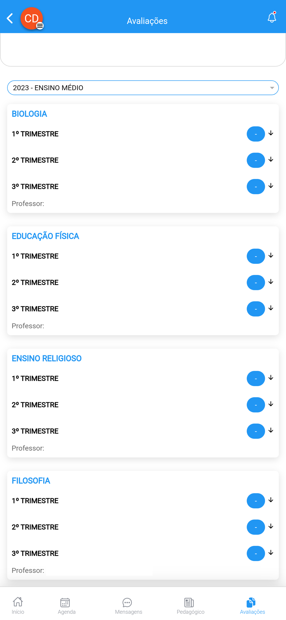 • As avaliações e faltas do ano ou semestre atual e passados, com envio de notificações e push quando as avaliações forem liberadas ou alteradas pela Instituição ou pelo professor.