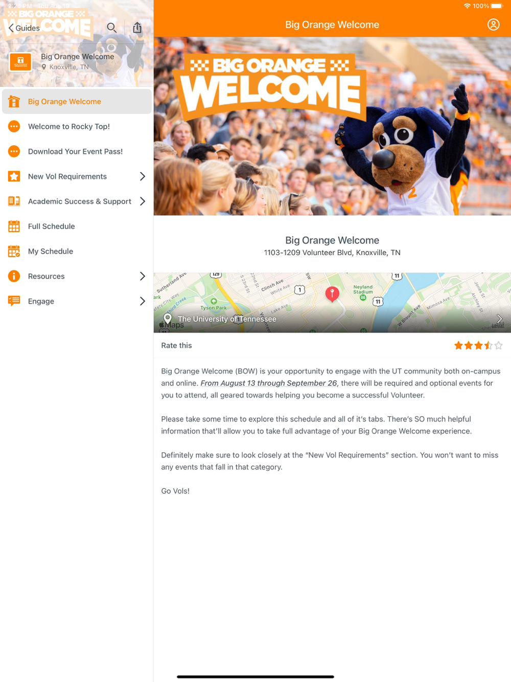 Welcome to the Volunteer Family. These guides will help new University of Tennessee, Knoxville, students and their families stay connected throughout the New Vols Experience. Download a number of guidebooks to access schedules, resources, and announcements for a variety of official UT events, including admissions programs, open houses, new student orientation, Move-in Weekend, Welcome Week, Ignite, sorority and fraternity recruitment, and Family Weekend.