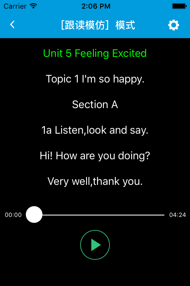 该应用支持跟读模仿,单次播放,单课循环,全部循环和听写的五种模式。它实现了实时评价用户跟读模仿的发音,并根据评价结果决定是否重新跟读。它以盲听跟读为设计原则,用户不需要反复触摸录音播放按钮,而是一键跟读,高效地练习口语。它还实现了单课循环,全部循环和智能分段功能。其中,智能分段可以让您免于寻找回放点,提高听音效率。在听写模式下,它提供了快速,常速和慢速三种模式供您选择。它贯彻了跟读模仿练习英语口语和通过听写练习英语听力的有效学习方法,让更多的学生摆脱哑巴英语,促进听力和口语相互提高,助力英语听力口语考试。