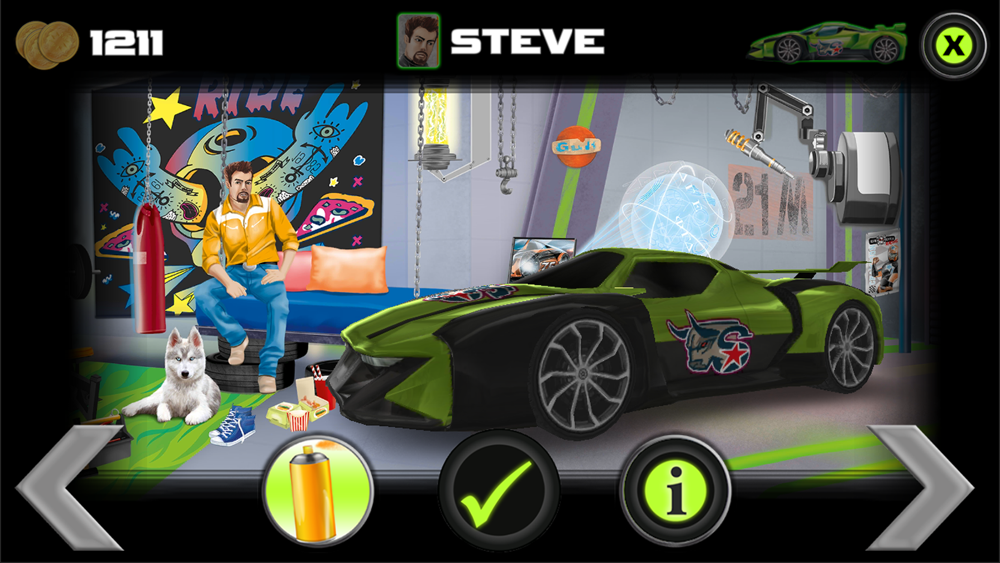 • 4 racing car drivers to choose from (Mick, Alex, Steve, Ben)