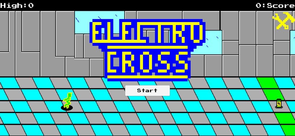 Electro Cross is a runner style game loosely based off newer runners like Temple Run and older runners like Metro Cross (メトロクロス). The goal is to make it to the end without the timer ending. Move your finger around the screen to move Electro and tap to make him jump. Run into the cans to get certain bonuses (like time or points). Jump over the slowdown squares and holes. Step on the switches to make the laser walls disappear.