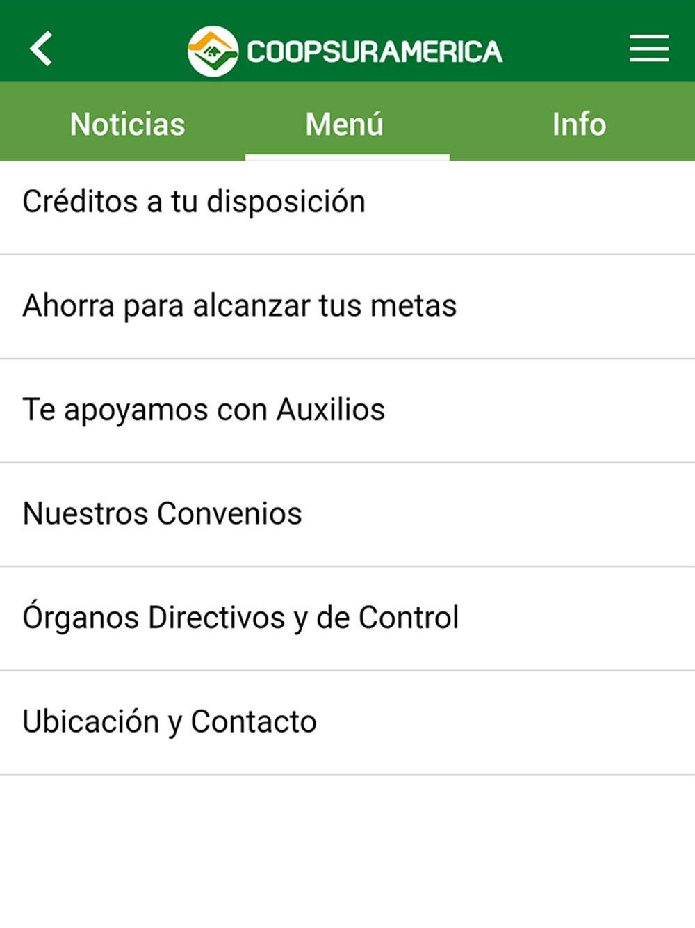 Aplicación para la cooperativa de ahorro y crédito de Suramérica.