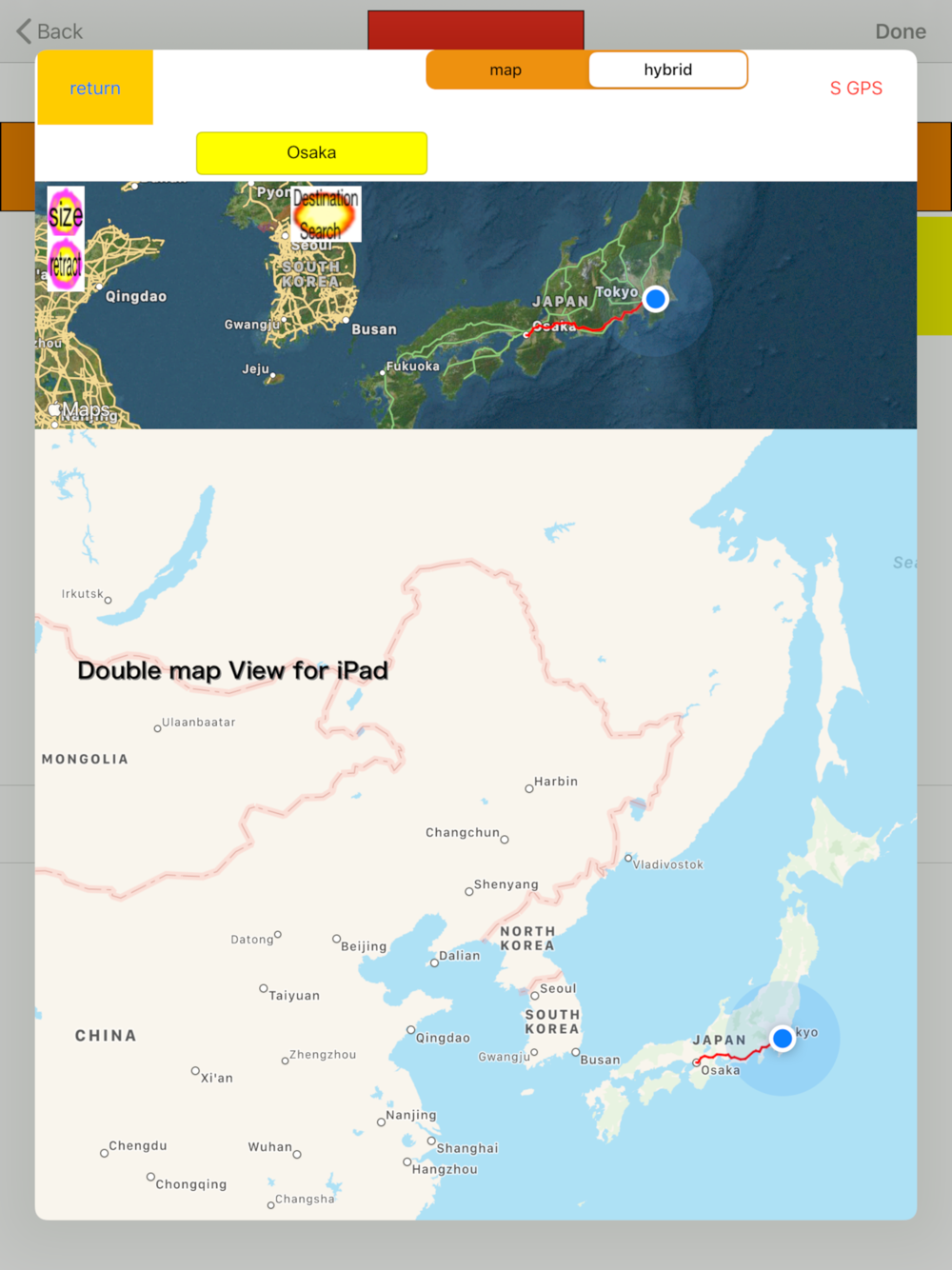 2. A compass map app that turns the map itself in response to the geomagnetism and shows the north. 3. A 2-point map that connects you with a red line along the road when you enter the names of two places in the countries beyond the sea. App.