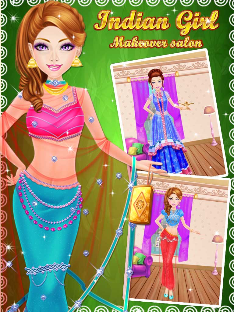 Indian Girls Makeover Salon is a fun spa, makeup, design and dress up game for girls where you can make your Indian girl look better than Barbie! All you have to do is design the latest styles, makeup and hair, then dress each model until she looks perfect!