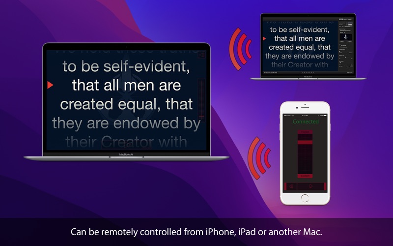 Power Prompter is not only incredibly easy to use, but it's also packed with powerful features that make it a must-have for anyone creating videos or giving presentations. With its automatic font size adjustment to fit your screen's resolution, you'll never have to manually fiddle with font sizes again. Plus, with the free iPhone remote control app, you can easily control Power Prompter over Bluetooth or WiFi, giving you the freedom to move around while you deliver your lines.